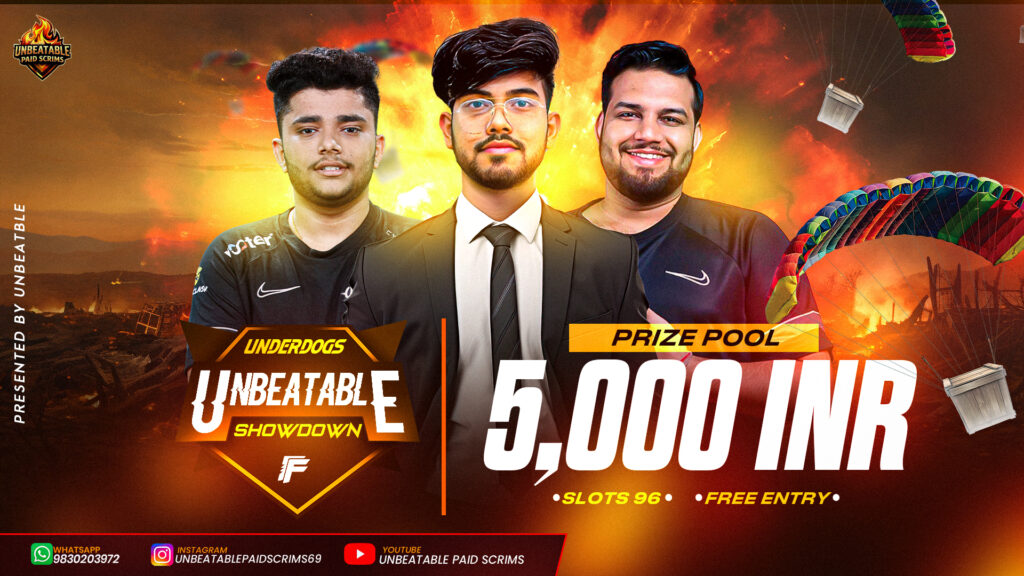 Play free and paid tournaments with Unbeatable Paid Scrims and get a chance to win up to ₹1200 per lobby.